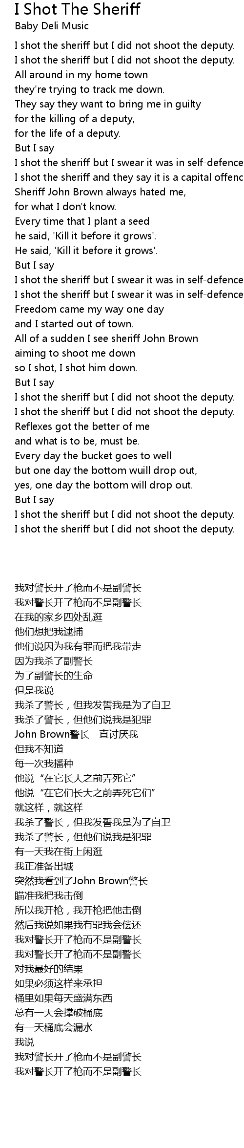 I shot the sheriff but I did not shoot the deputy. |