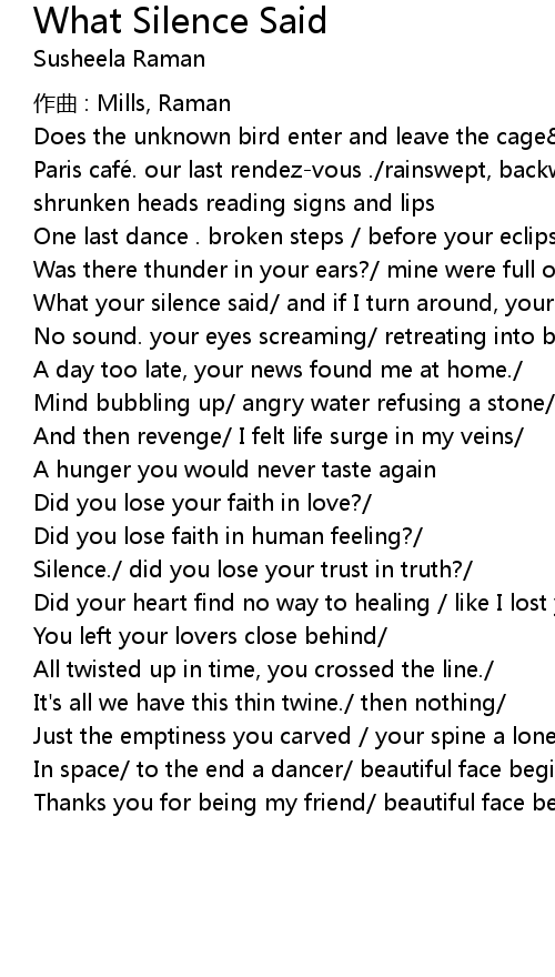 | Song | What Silence Said |