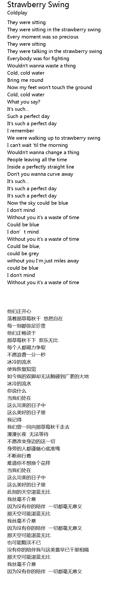 | [00:52.27] | They were talking in the strawberry swing |
