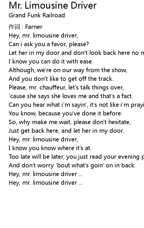 | Hey, mr. limousine driver, | |