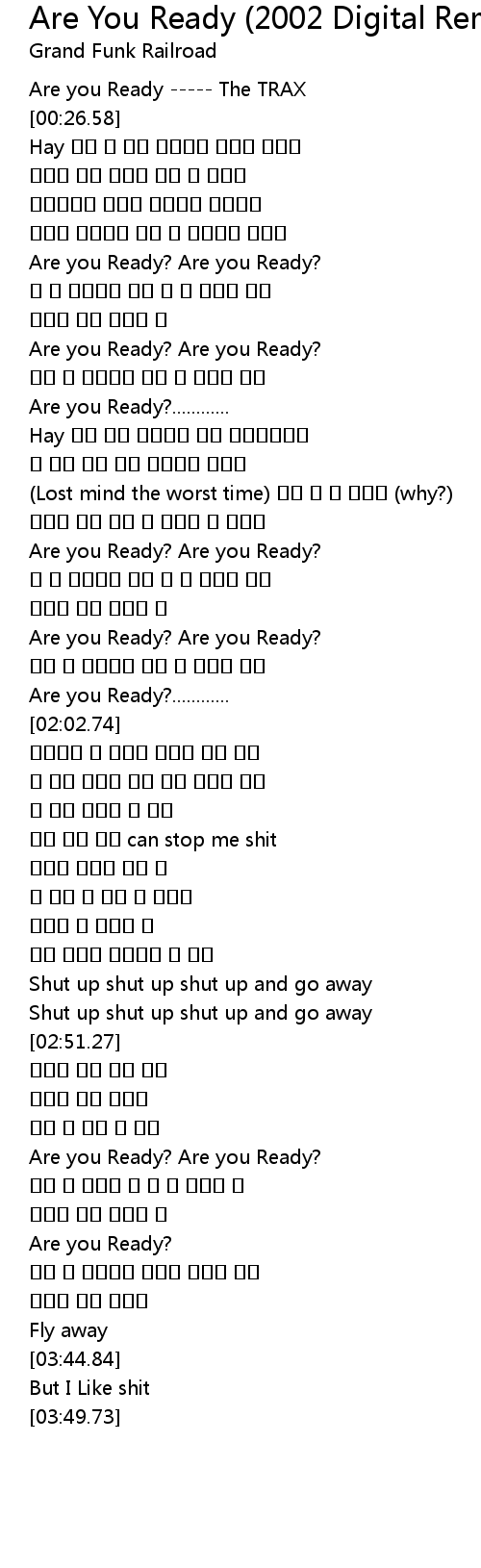 | [03:13.13] | Are you Ready? Are you Ready? |