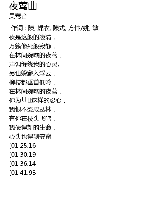| [02:27.61][01:36.14] | 在林间婉啭的夜莺, |
