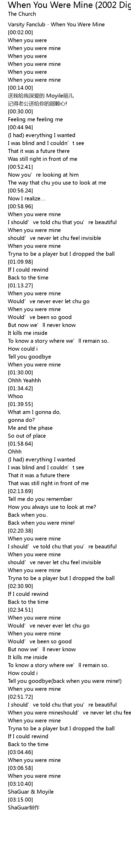 | [00:00.00] | Varsity Fanclub - When You Were Mine |