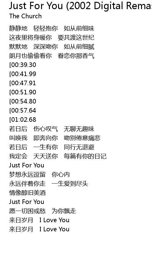 | [02:09.25][01:02.68] | gong du yi hou I Love You |