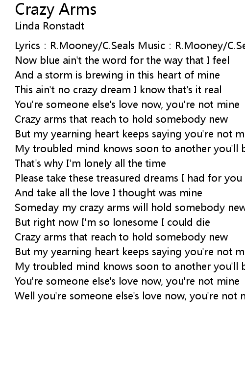 | Someday my crazy arms will hold somebody new | |
