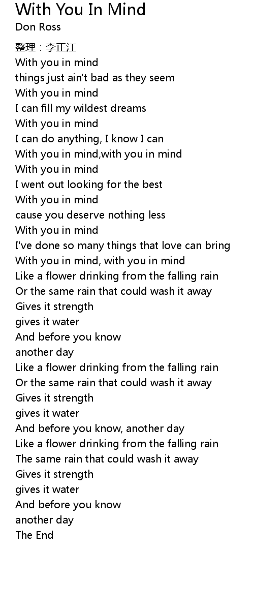 | [01:12.56] | With you in mind, with you in mind |