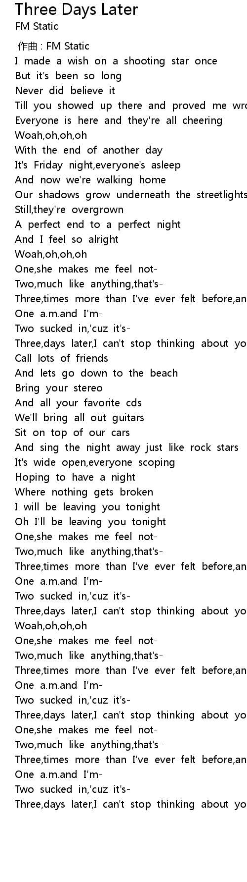 | [00:36.583] | Three, days later, I can' t stop thinking about you |