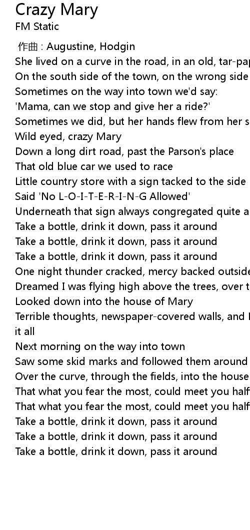 | [00:29.00] | Wild eyed, crazy Mary |