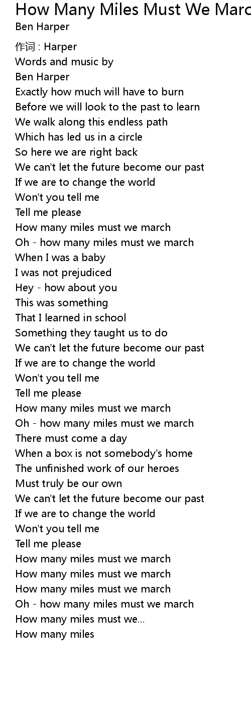 | Song | How Many Miles Must We March |