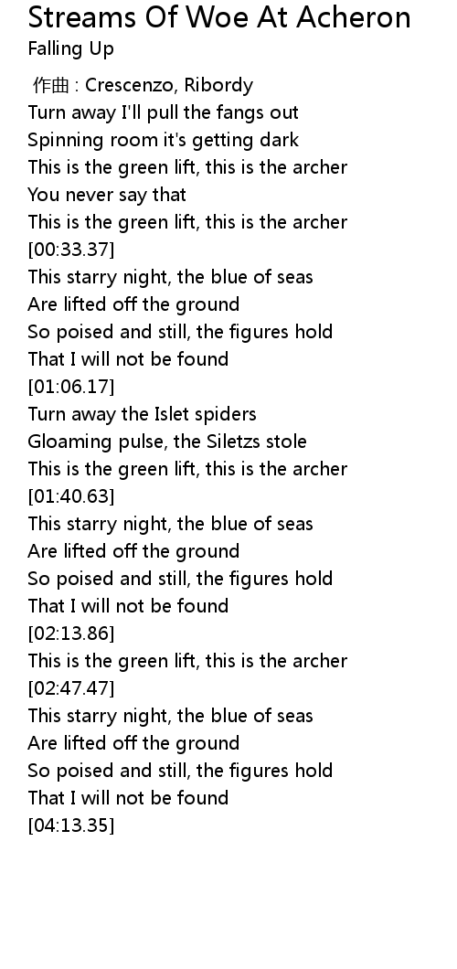 | [01:17.77] | Gloaming pulse, the Siletzs stole |