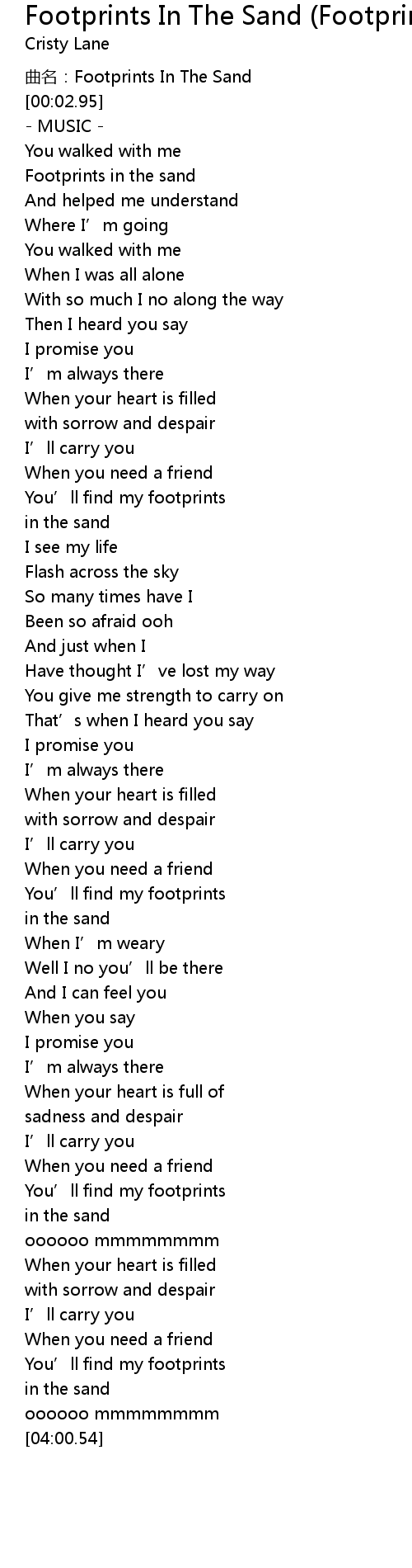 | Song | Footprints In The Sand (Footprints In The Sand Album Version) |