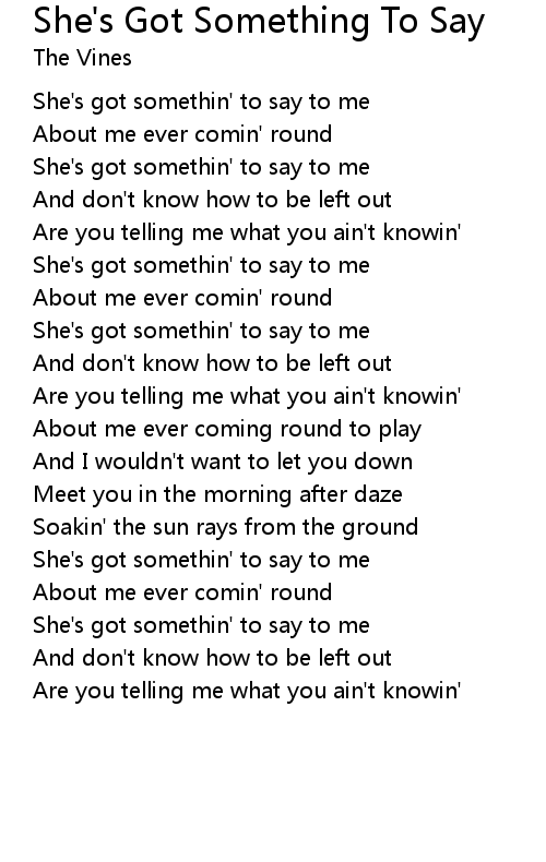 She's got somethin' to say to me |