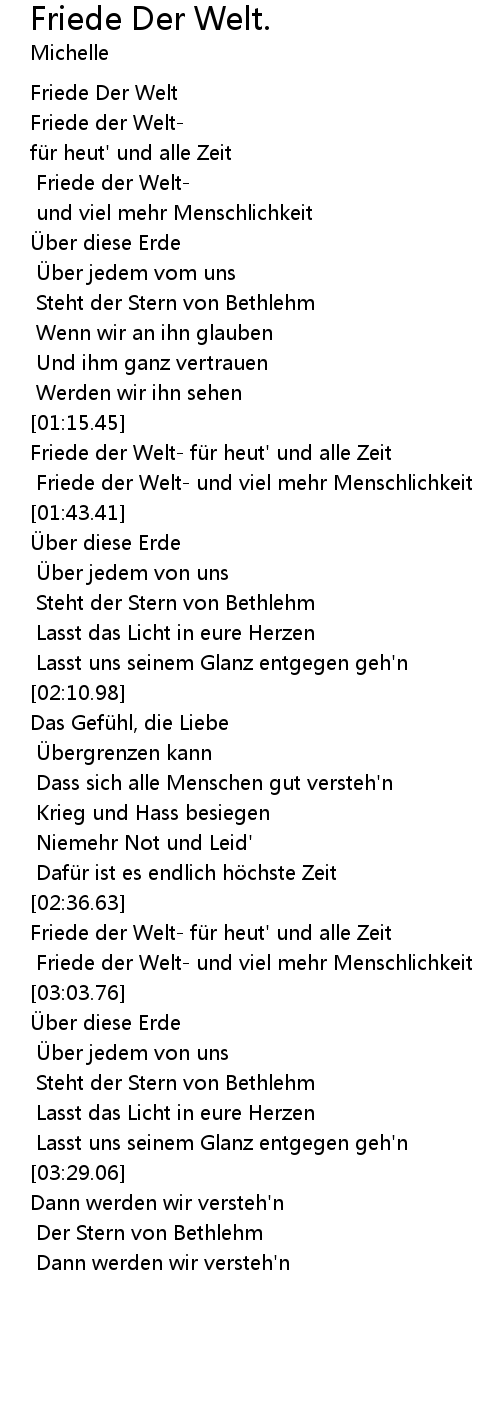 | [01:32.35] | Friede der Welt und viel mehr Menschlichkeit |