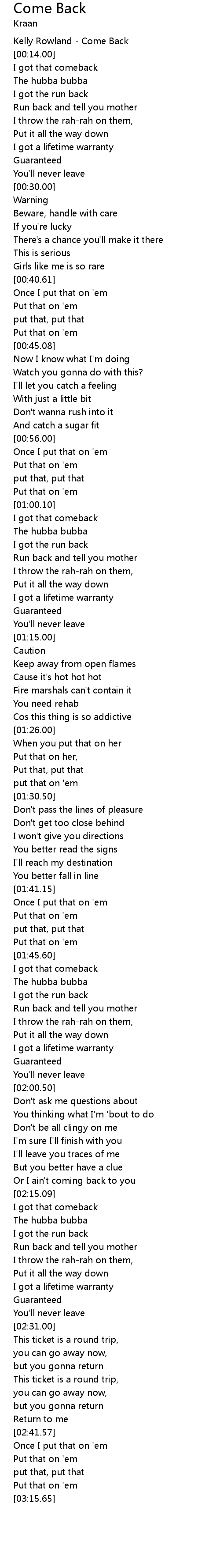 Kelly Rowland - Come Back |