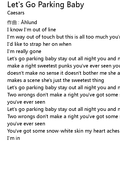 | Let' s go parking baby stay out all night you and me together two wrongs don' t make a right sweetest punks you' ve ever seen you' re such a crazy girl she doesn' t make no sense it doesn' t bother me she always throws me out she always makes a scene she' s just the sweetest thing | |
