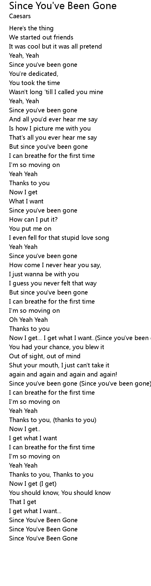 Now I get... I get what I want..(Since you've been gone) |