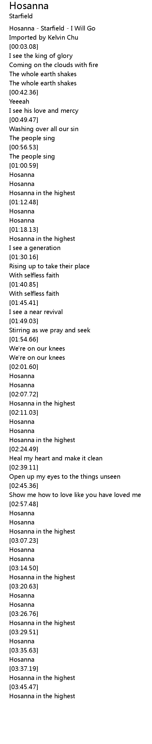 | [03:36.19] | Hosanna |