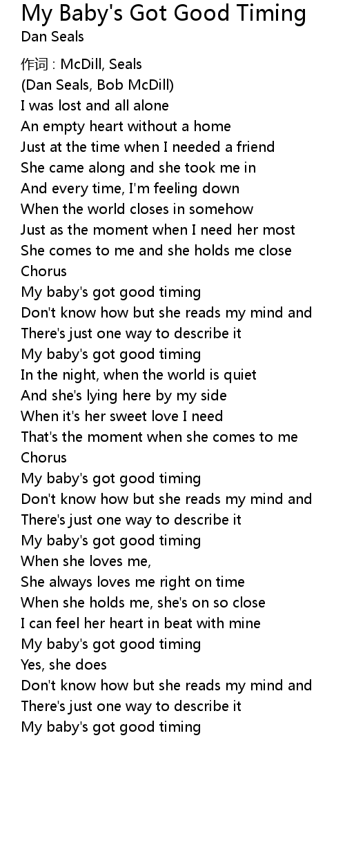 | Song | My Baby's Got Good Timing |