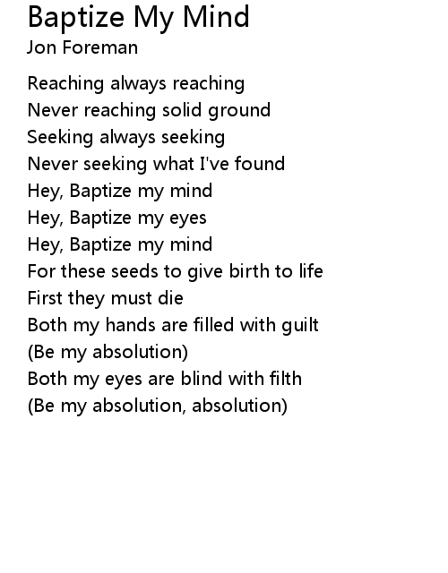 | Hey, Baptize my mind | |