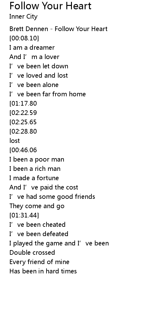 | [00:01.12] | Brett Dennen Follow Your Heart |