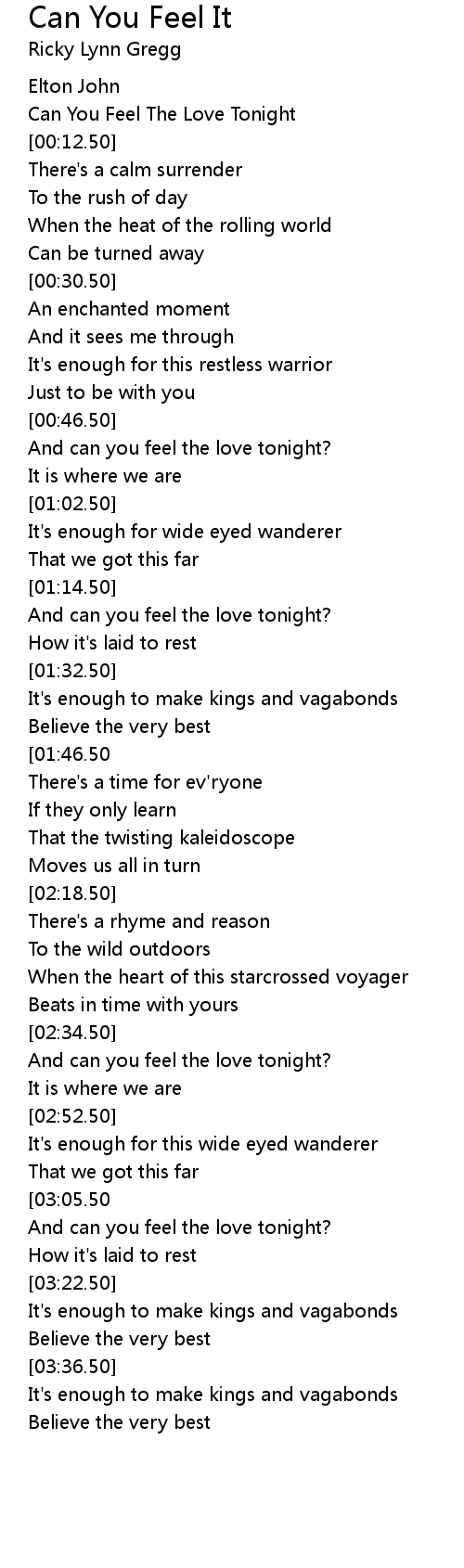 And can you feel the love tonight? |