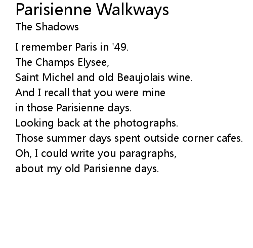 | Song | Parisienne Walkways |