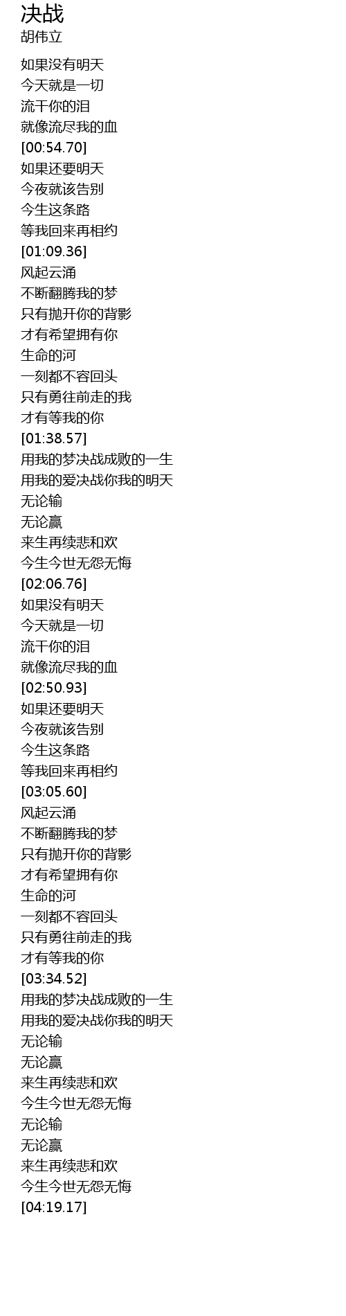 | [03:42.50] | 用我的爱决战你我的明天 |