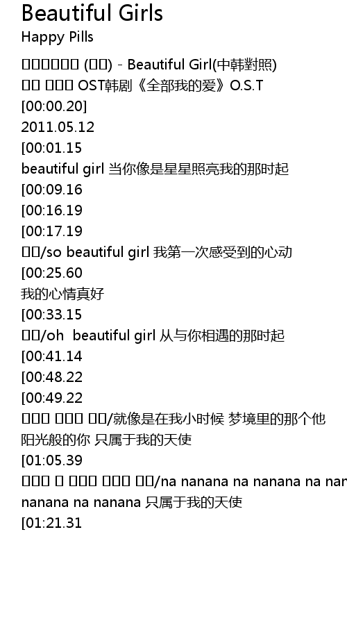| [00:00.00] | Beautiful Girl zhōng hán duì zhào |