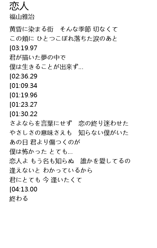 | [03:42.94][01:09.34] | 恋人よ もう抱きしめることなど |