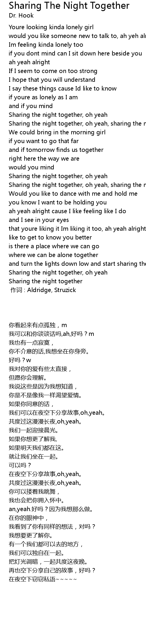 | [01:28] | Sharing the night together, oh yeah, sharing the night. |