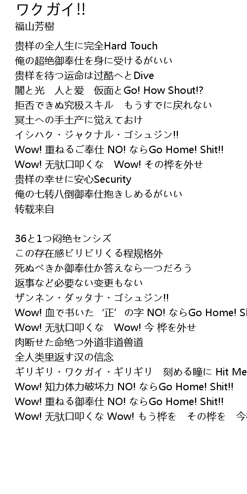 | Wow! 无驮口叩くな Wow! もう桦を その桦を 今桦を外せ |