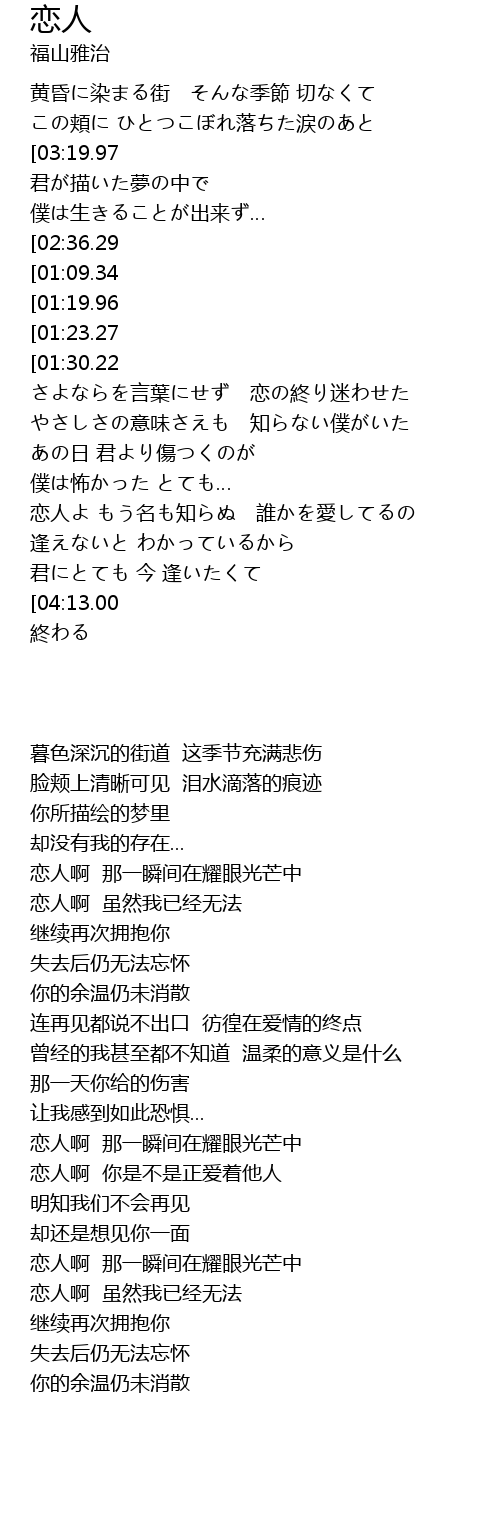 | [03:42.94][01:09.34] | 恋人よ もう抱きしめることなど |