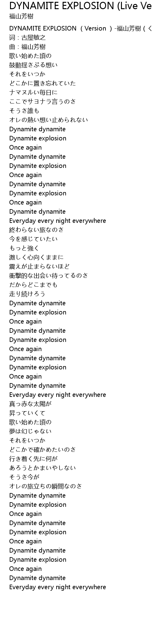 | [00:00.00] | DYNAMITE EXPLOSION (Version )-福山芳樹(くやまよしき) |