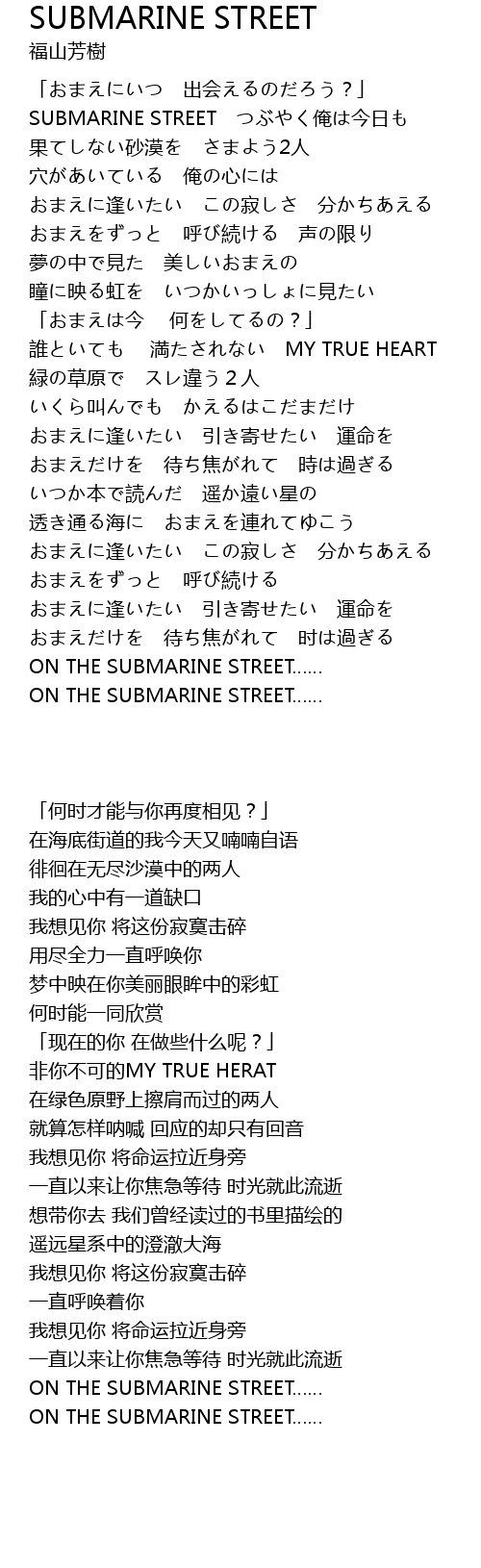 | [03:49.94] | ON THE SUBMARINE STREET…… |