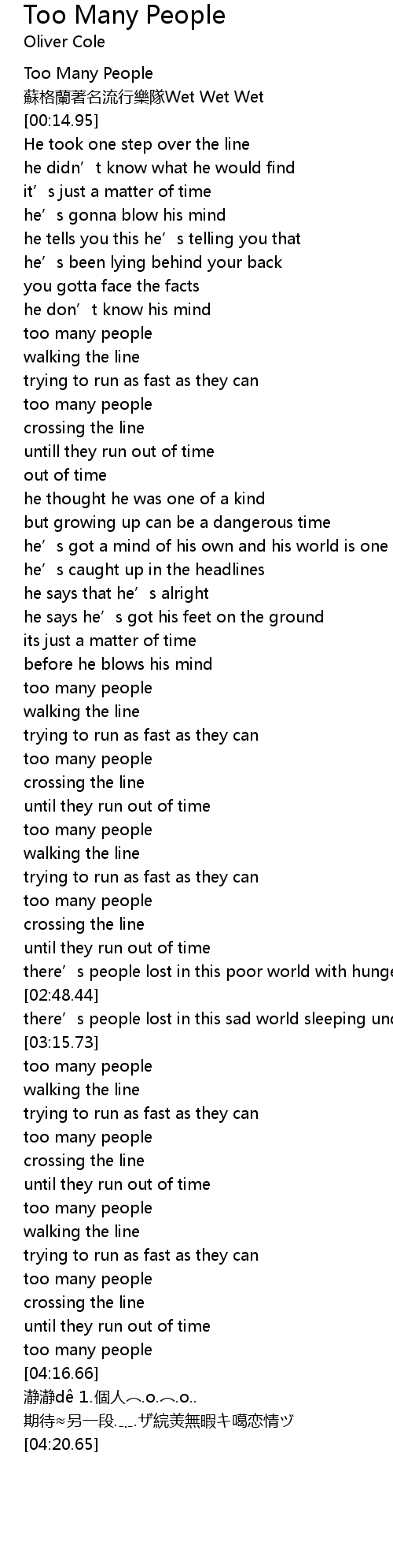 | [00:09.60] | Too Many People |