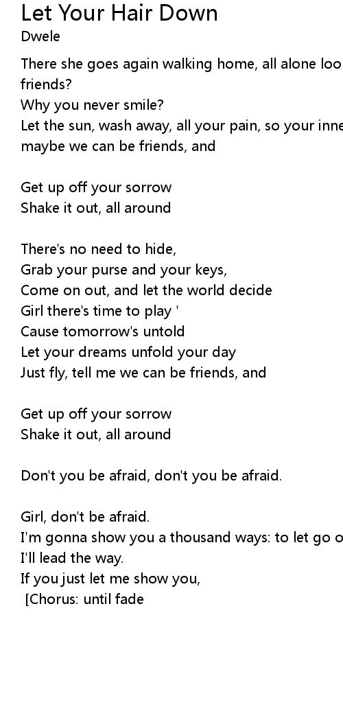| I wanna see you let your hair down [repeat] [Chorus: until fade] |