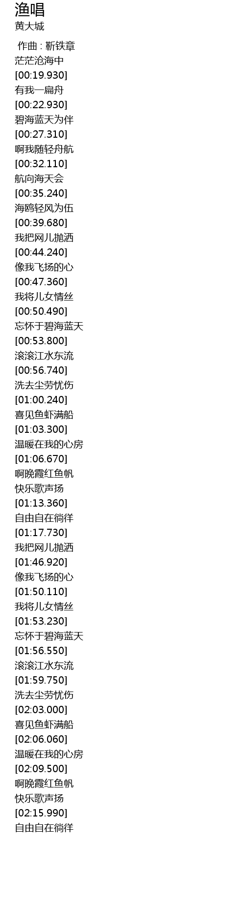 | [02:10.250] | 啊晚霞红鱼帆 |