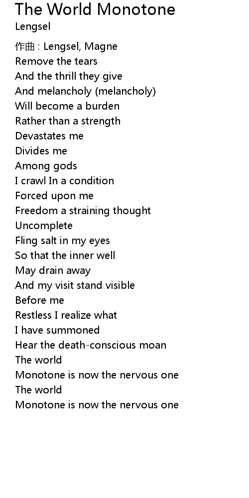 | Monotone is now the nervous one |