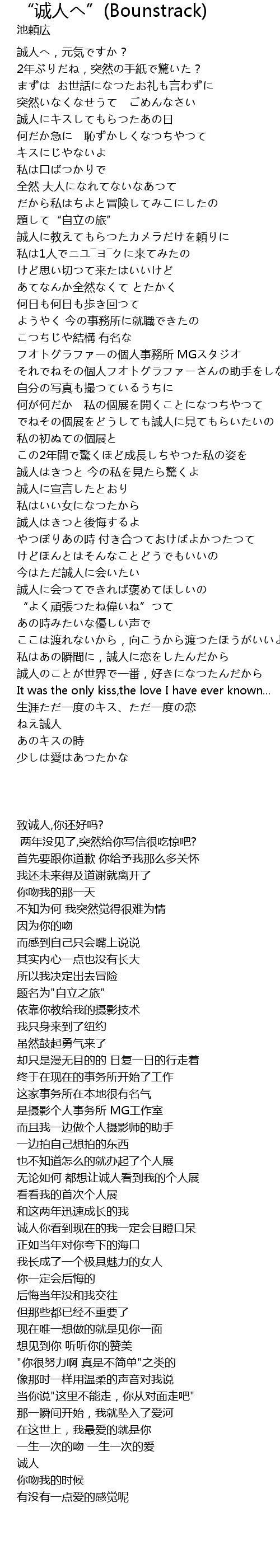 | Song | “诚人へ”(Bounstrack) |