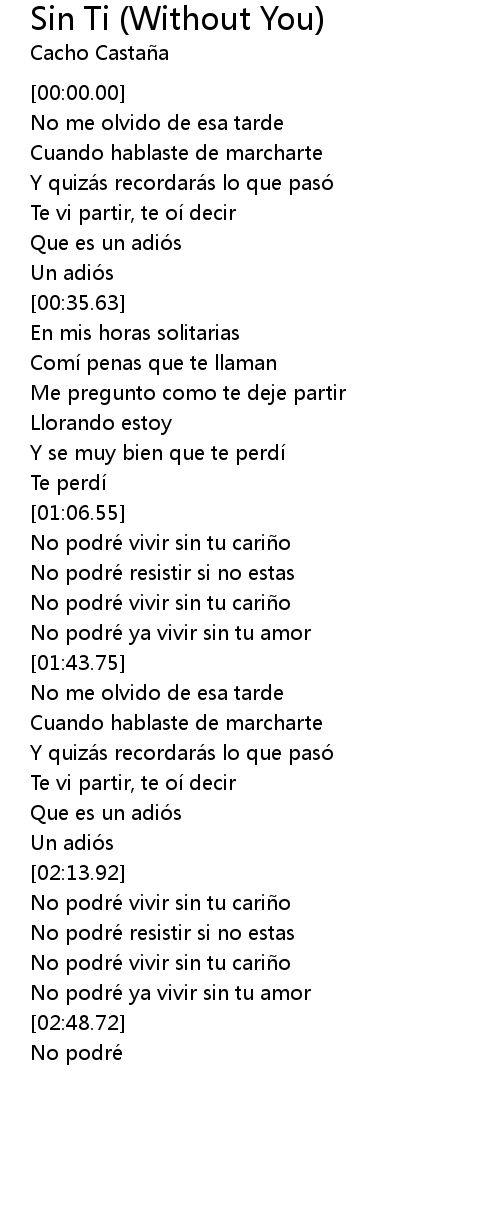 | [01:25.83] | No podre vivir sin tu cari o |