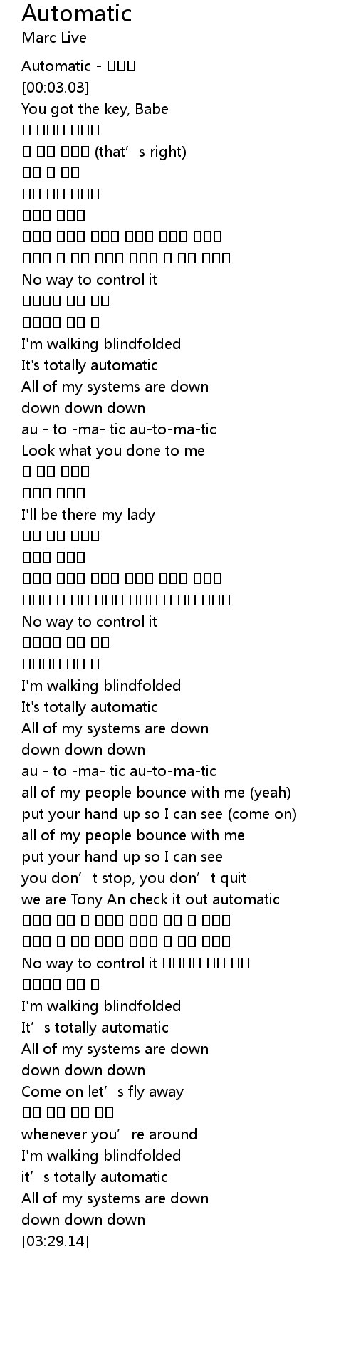 | [02:10.42] | au - to -ma- tic au-to-ma-tic |