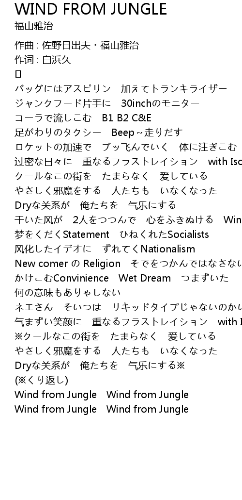 | 干いた风が 2人をつつんで 心をふきぬける Wind from Jungle | |