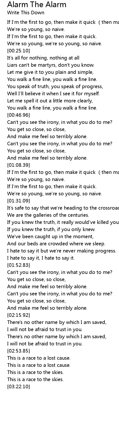 | [00:14.53] | If I'm the first to go, then make it quick. |