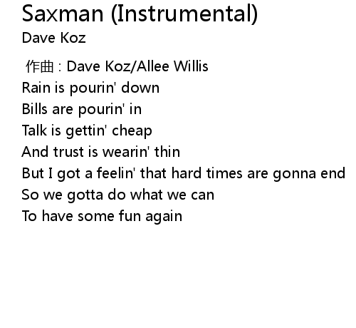 | [00:00.000] | zuo qu : Dave Koz Allee Willis |