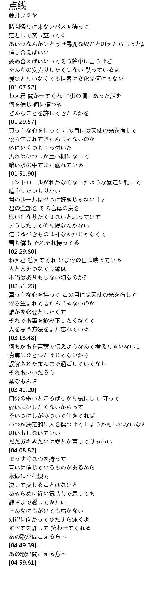 | [02:41.13] | 人と人をつなぐ点線は 本当はありもしない幻なのか? |