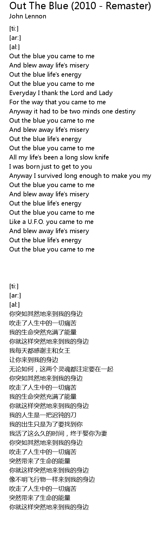 Out the blue you came to me |