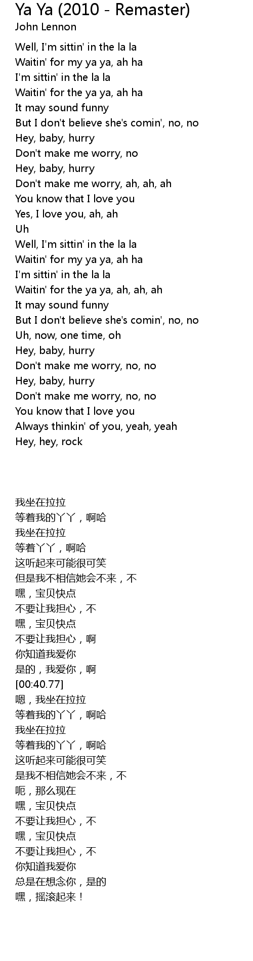 Waitin' for the ya ya, ah, ah, ah |