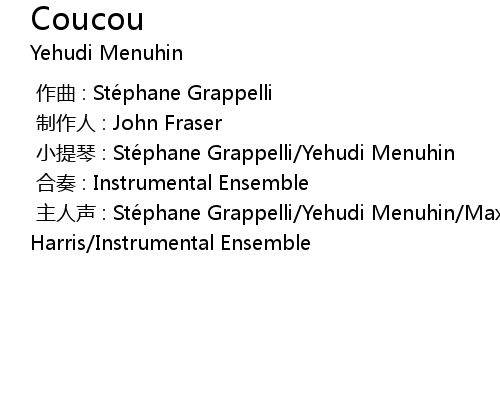 | [00:00.000] | zhǔ rén shēng : Sté phane Grappelli Yehudi Menuhin Max Harris Instrumental Ensemble |