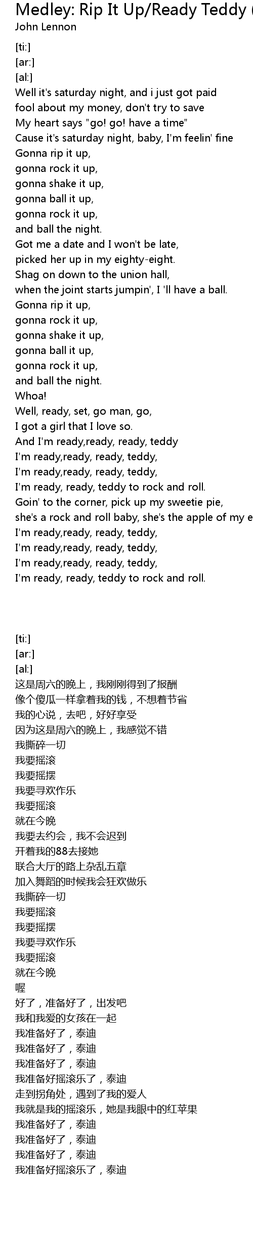 I'm ready, ready, teddy to rock and roll. |