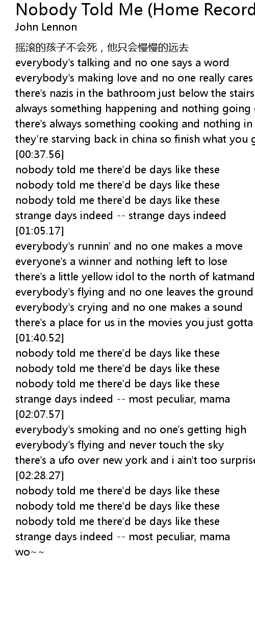 | [02:48.89] | strange days indeed -- most peculiar, mama |